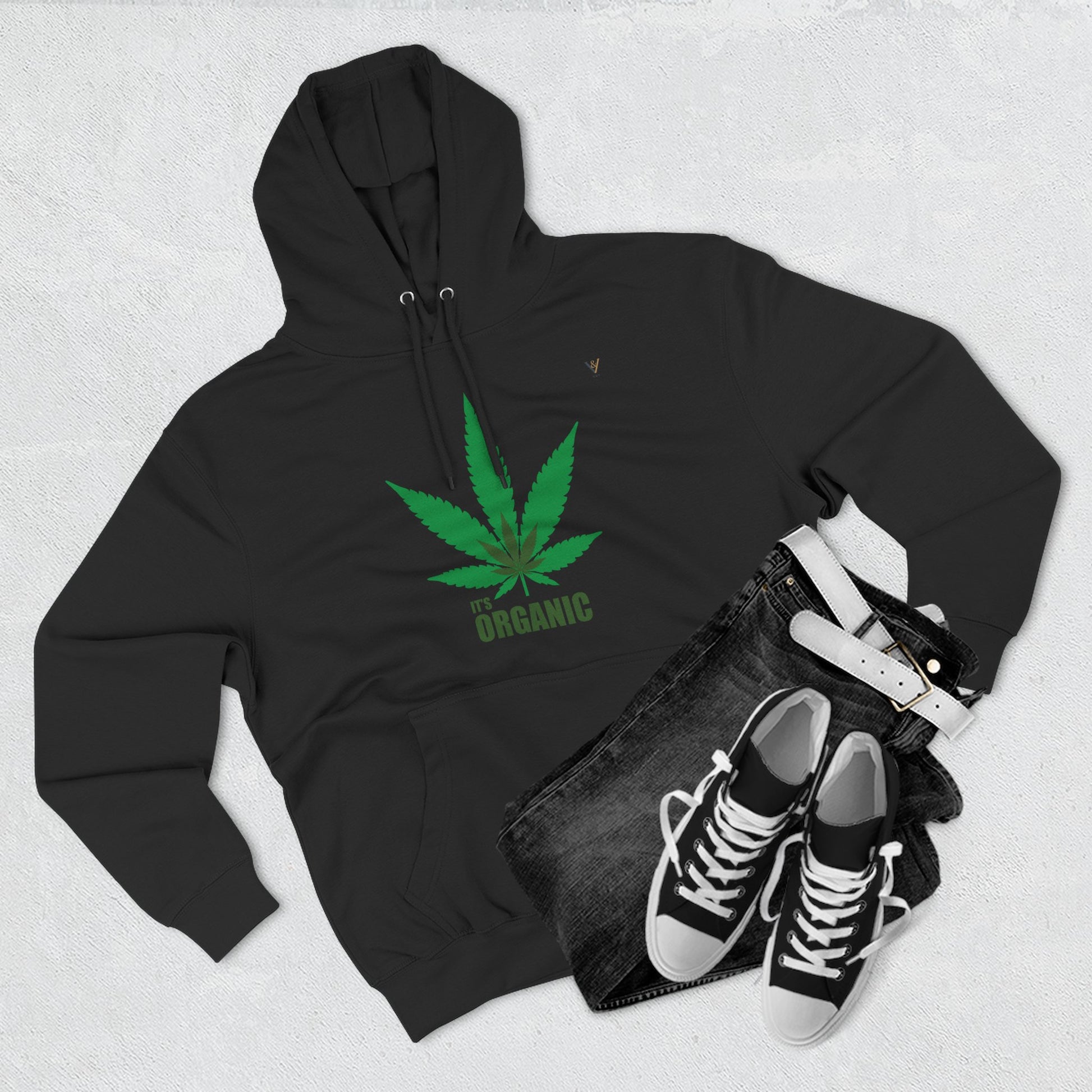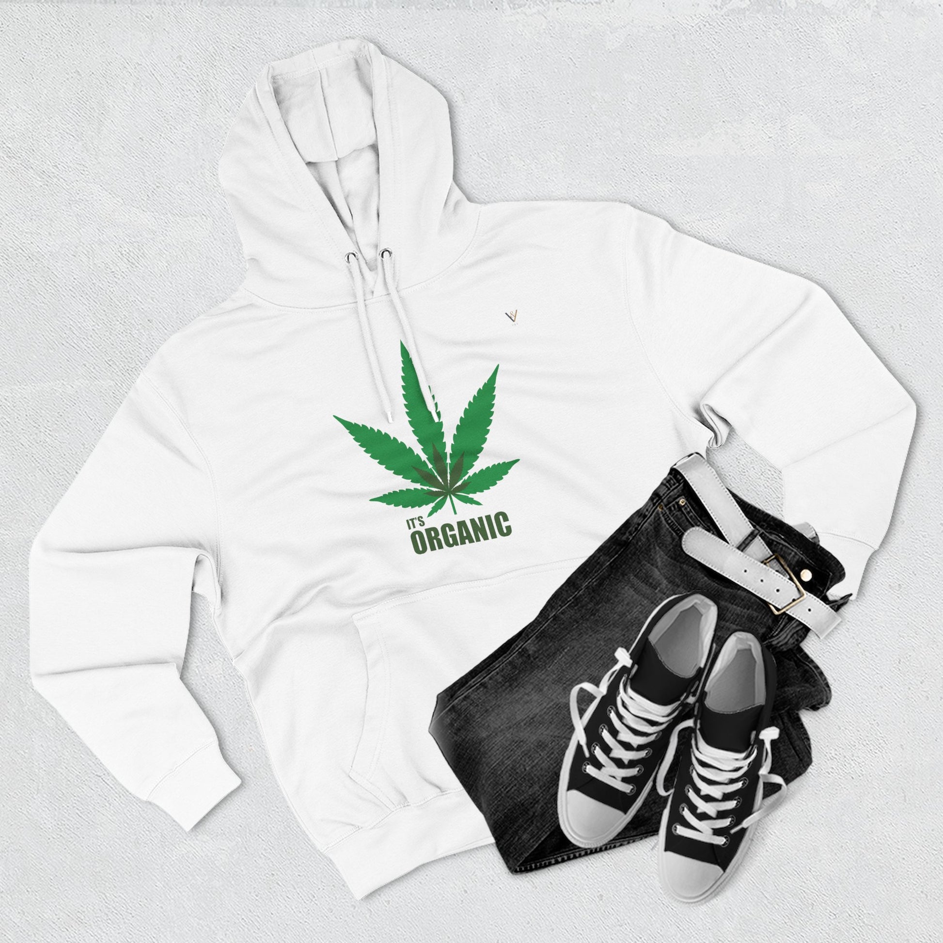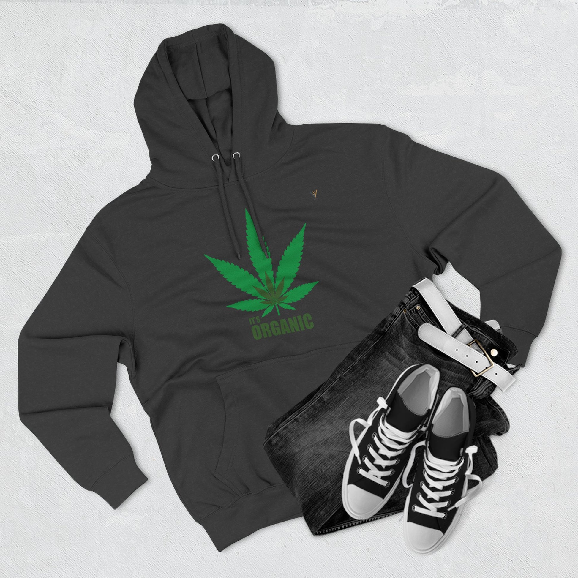 Organic Hemp Leaf Fleece Hoodie - Eco-Friendly Cannabis Apparel